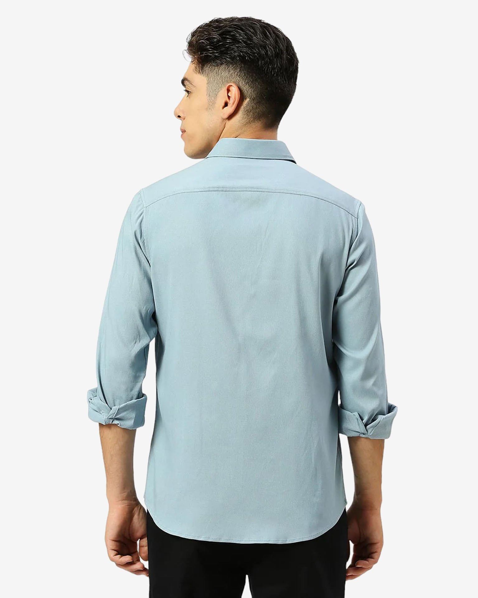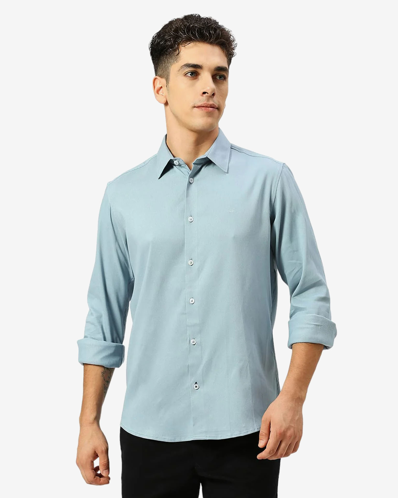 BASICS 24BSH55149 MENS SHIRT Mid Blue LS 60.8%Viscose 35.3%Poly 3.9%Stretch
